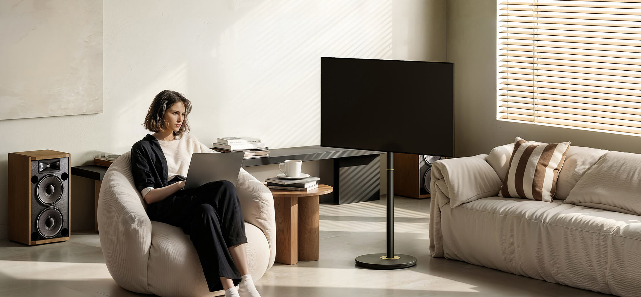 Breng een vleugje Scandinavische frisheid en eenvoud in huis. Met zijn minimalistische ontwerp en natuurlijke tinten voegt hij een gevoel van rust en harmonie toe aan uw woonkamer, slaapkamer of waar u uw tv ook wilt plaatsen.