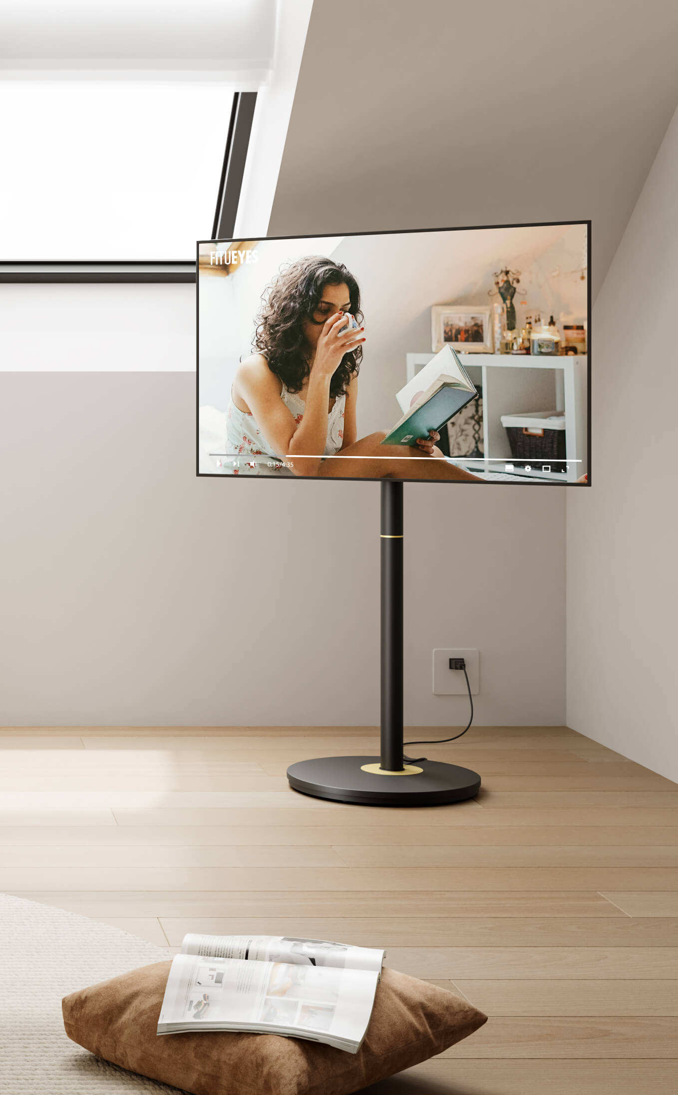 Fernsehständer mit RollenSchwarzer Fernsehstandfuß auf dem Dachboden