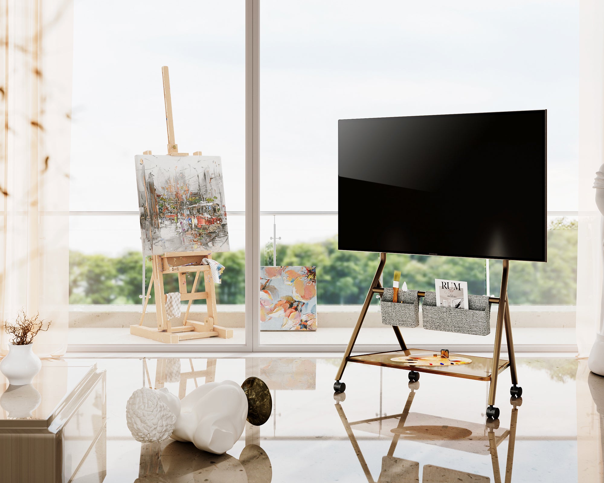 Collector Series features 4 high-quality universal wheels, allowing you to move it as you wish. All 4 wheels are also equipped with brakes, so you can secure the TV stand in various locations according to your needs.