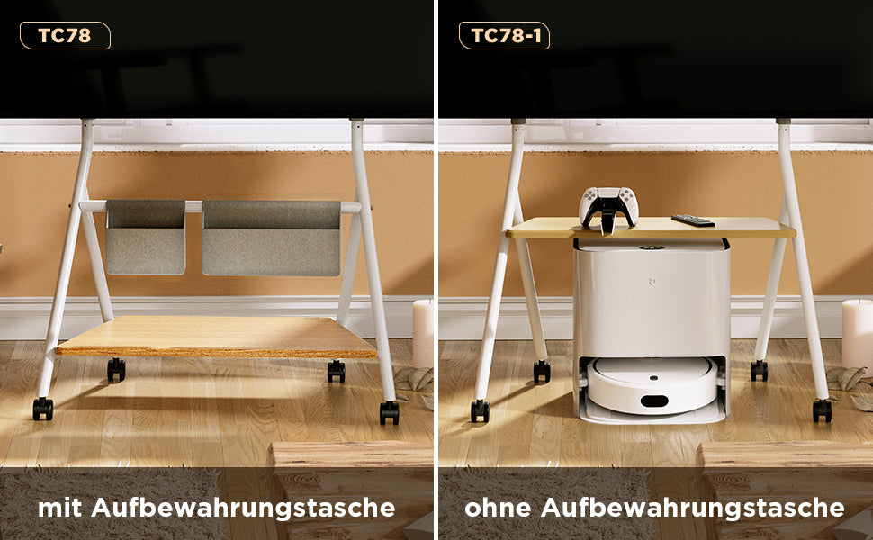 14 levels of adjustable height via the VESA rail from 1100 mm to 1300 mm, this TV stand can perfectly adapt to different TV sizes and sofa heights.
