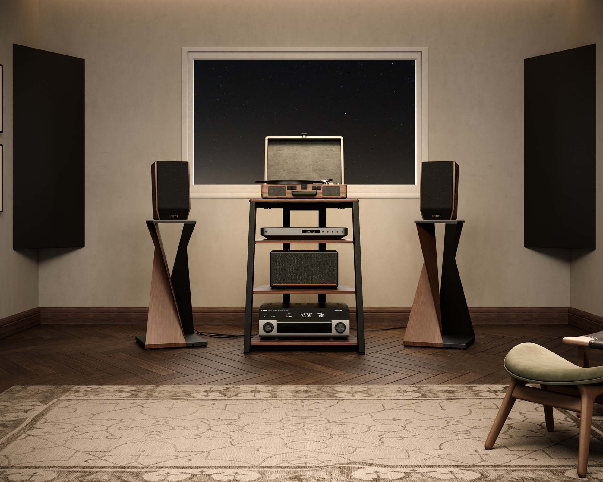 Geïnspireerd door de Eiffeltoren. Het trapeziumvormige ontwerp biedt extra stabiliteit, waardoor deze platenspelerstandaard sterker en robuuster is dan vergelijkbare modellen. De afzonderlijke planken hebben een draagvermogen van 50 kg, 20 kg, 6 kg en 20 kg, ideaal voor uw platenspeler, versterker en vinylcollectie.